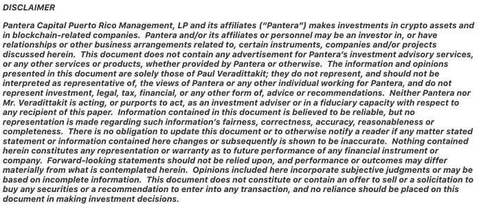 Hi, I’m Paul Veradittakit, a Managing Partner at Pantera Capital, one of the oldest and largest institutional investors focused on investing in blockchain companies and cryptocurrencies. I’ve been in the industry since 2014, and the firm invests in equity, early-stage token projects, and liquid cryptocurrencies on exchanges. I focus on early-stage investments and share my thoughts on what’s going on in the industry in this weekly newsletter.