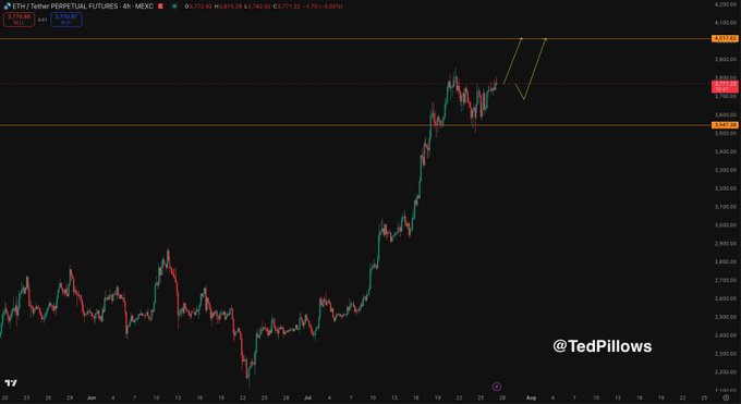 $ETH bounced after holding key $3,550 support. Best case scenario Ethereum continues to $4,000 from here. If we gain $4,000 a new ATH is imminent. 🤝