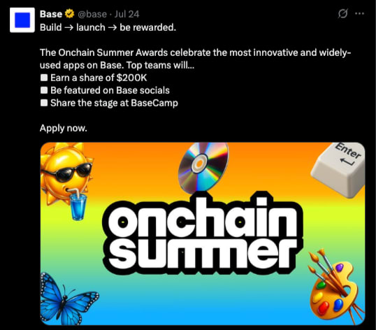 Not just that, the newly launched Base App is also calling for mini-app builders to start creating and testing. They launched a $200k rewards campaign to reward based on your app’s usage in July/August.