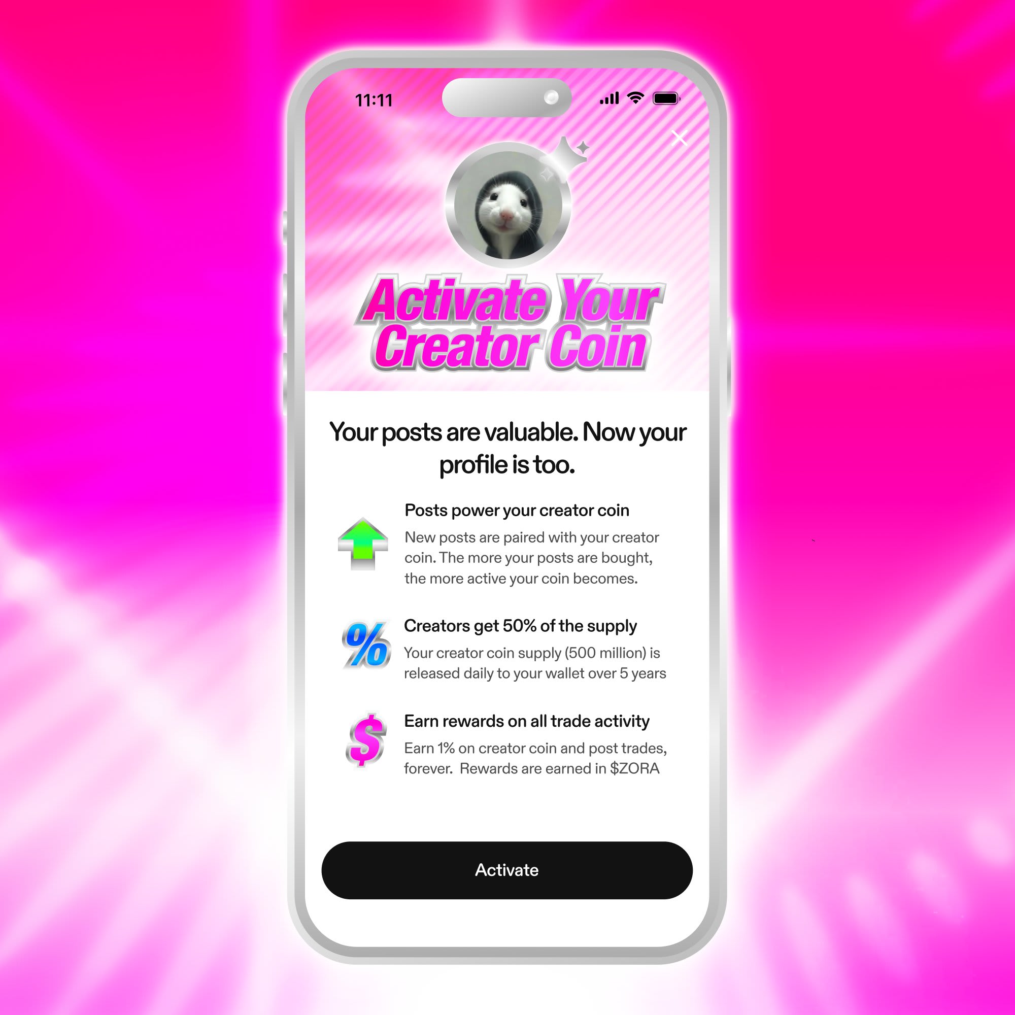 Now, here’s the catch. Zora lets you turn each piece of content into a token. Your main token is your Creator Coin. For instance, if your handle is @paul your core token is $paul. Each post you make becomes its own token that ties back to $paul.