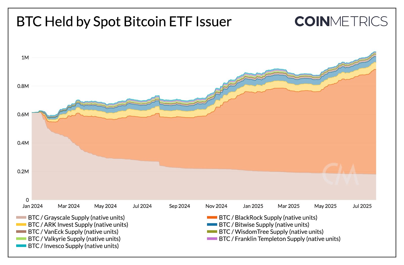 Source: Coin Metrics Network Data Pro, *Note: does not include Fidelity Wise Origin Bitcoin Fund (FBTC)