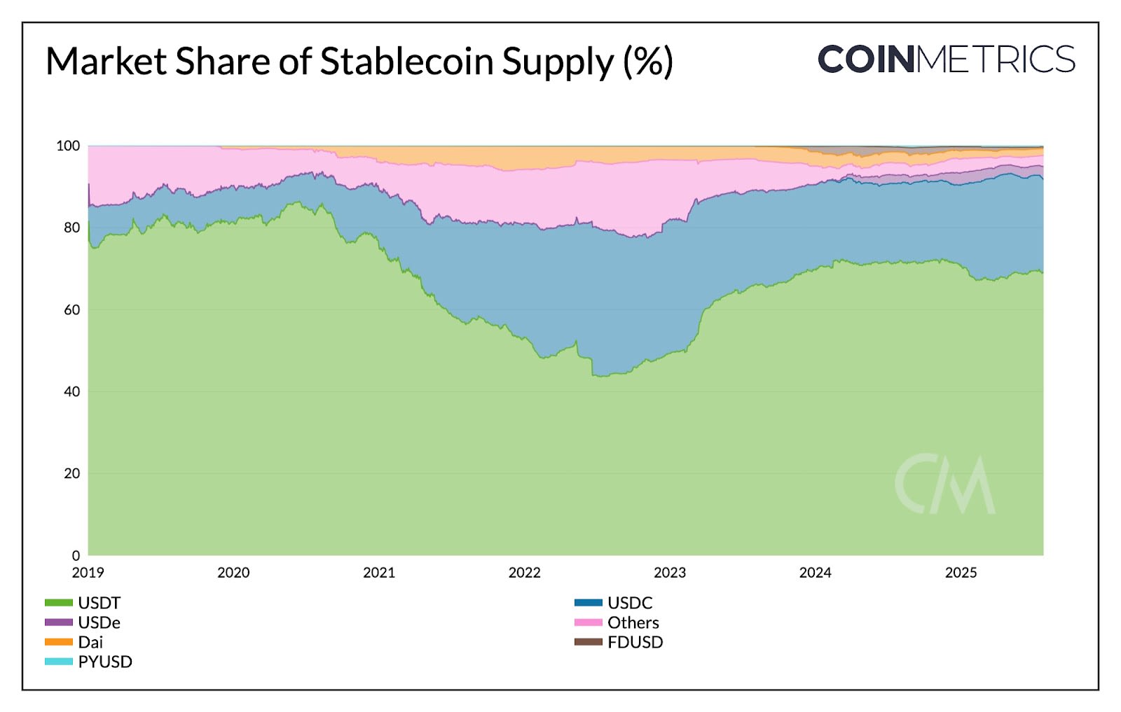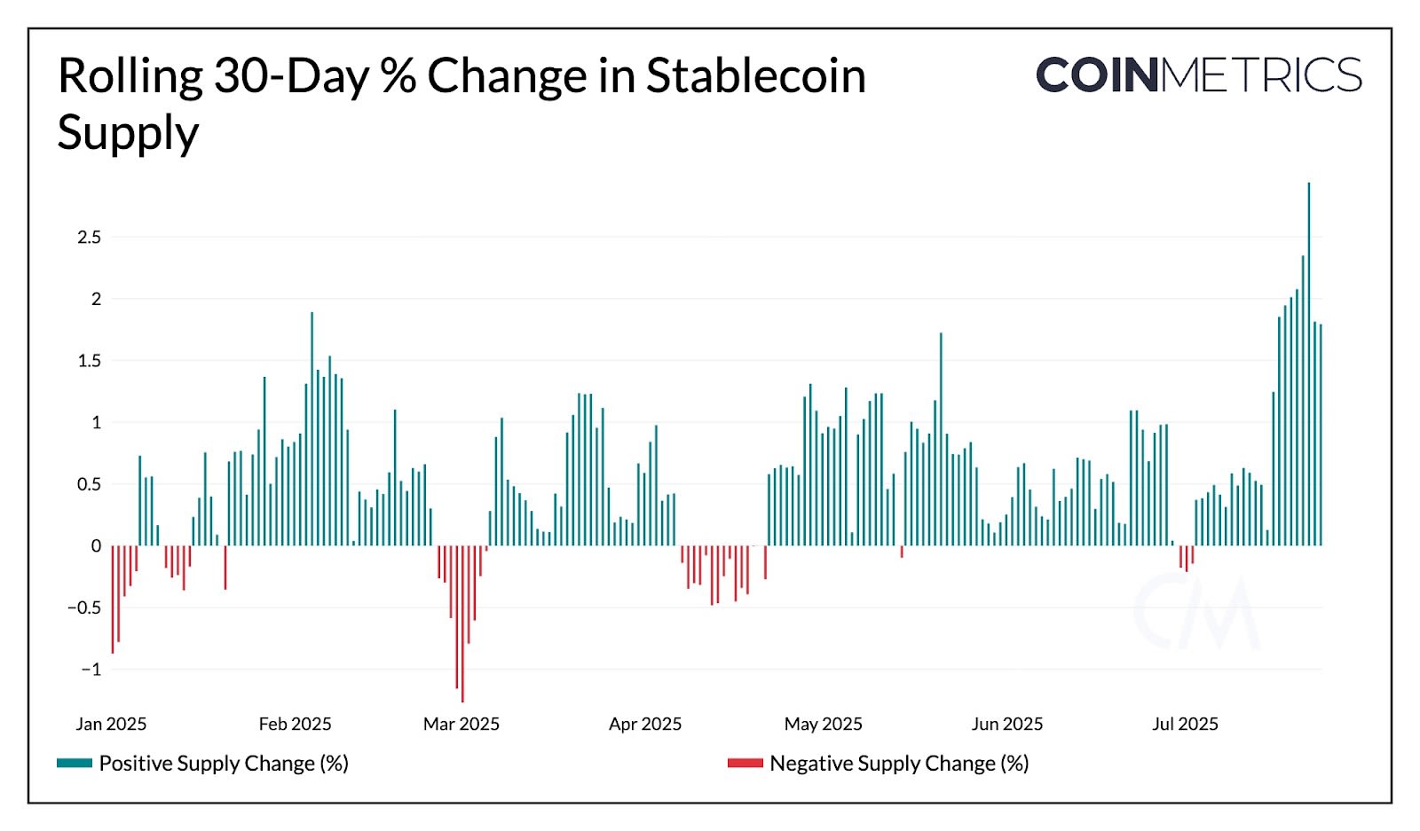The GENIUS Act was signed into law on July 18, establishing the first federal framework for fiat-backed stablecoins in the U.S. This provides a level-playing field for stablecoin issuers, requiring fully backed reserves composed of low-risk, short-dated U.S. Treasuries and cash, regular audits, and licensing for issuers. Much like the approval of spot Bitcoin ETFs, the GENIUS Act promises to bring clarity and legitimacy to the stablecoin sector largely dominated by USD-pegged stablecoins.