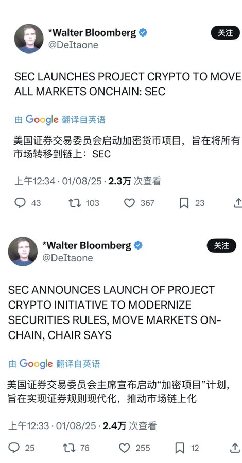 SEC Chairman Announces Launch of "Crypto Project" Plan, Aimed at Modernizing Securities Rules and Pushing to Move All Markets <加密项目> Onto the Blockchain, Taking Quite a Significant Step.