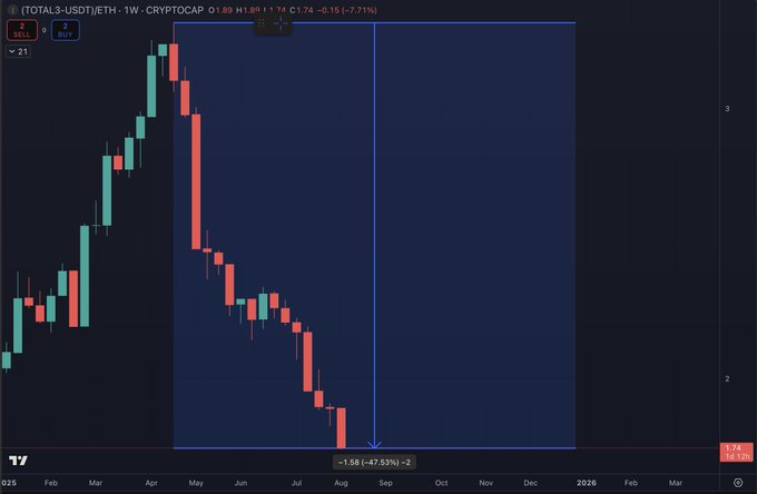 If this is alt season, why are ALTs down 47% against ETH since April?