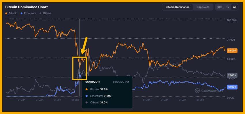 A popular post recalls a moment when ETH nearly matched Bitcoin’s dominance: