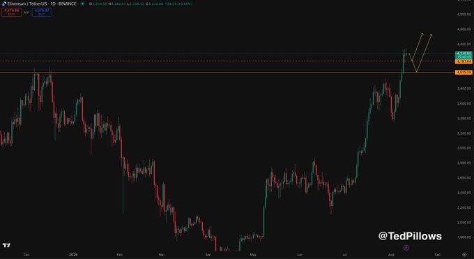$ETH is holding strong above $4,000. Support is at $4,180 and $4,000. I expect Ethereum to run when $BTC cools down.