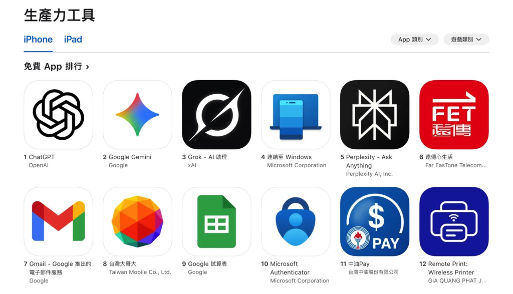 According to BlockTempo's test, in Taiwan's productivity tools category, Grok currently ranks third, with ChatGPT and Google Gemini in the top two positions. Whether there is deliberate suppression as Musk claims remains questionable, but it's likely just another verbal sparring.