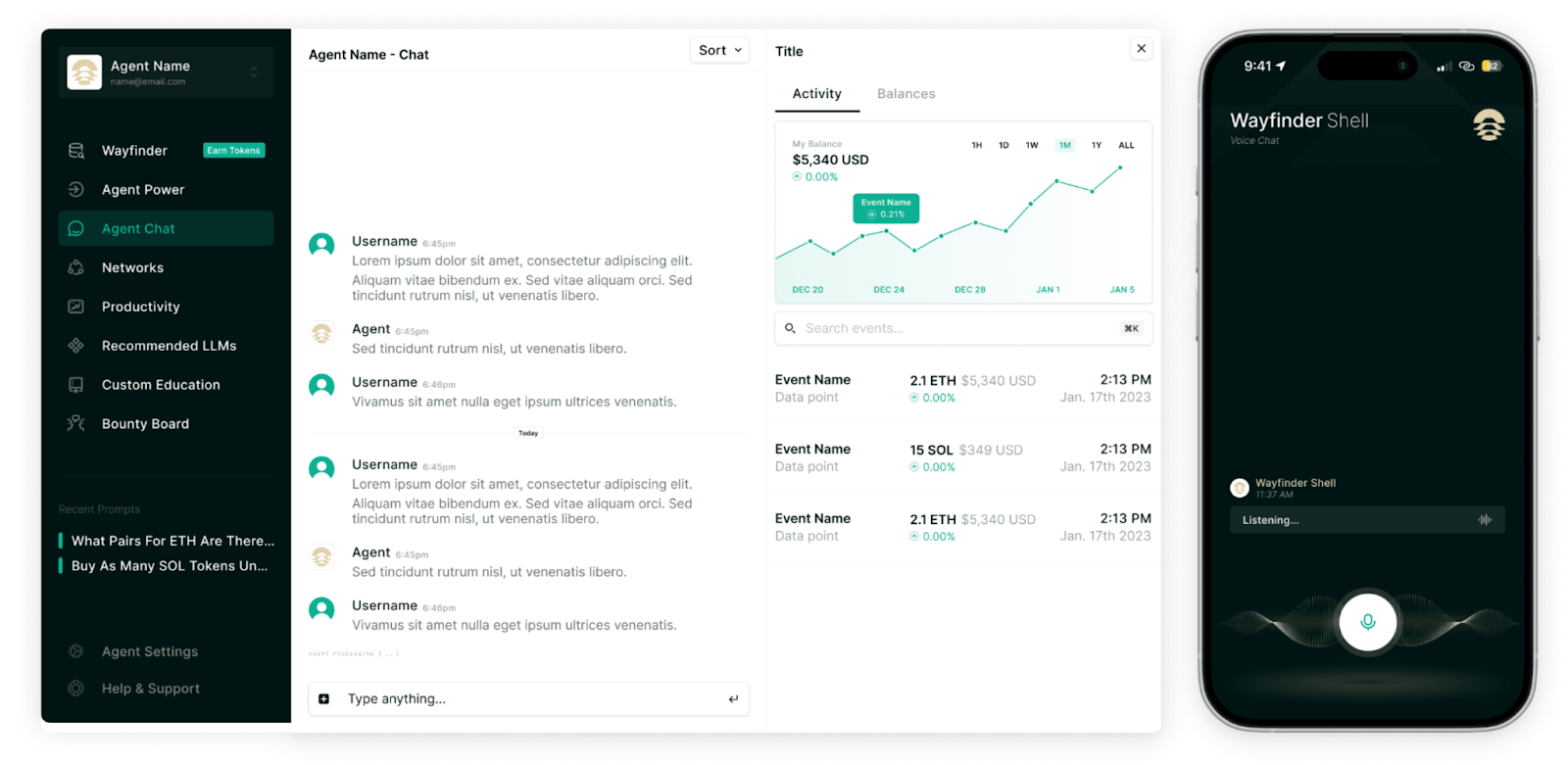 Wayfinder Shell (referred to as Shells) Vai as an interface where users interact with specialized AI agents to build and execute various on-chain strategies. Shells provide agents with specialized Vai , working together to respond to user requests and handle complex tasks efficiently. Shells support major mainnets such as Ethereum, Solana, Base, and Avalanche, enabling smooth asset management in a Multi-Chain environment.