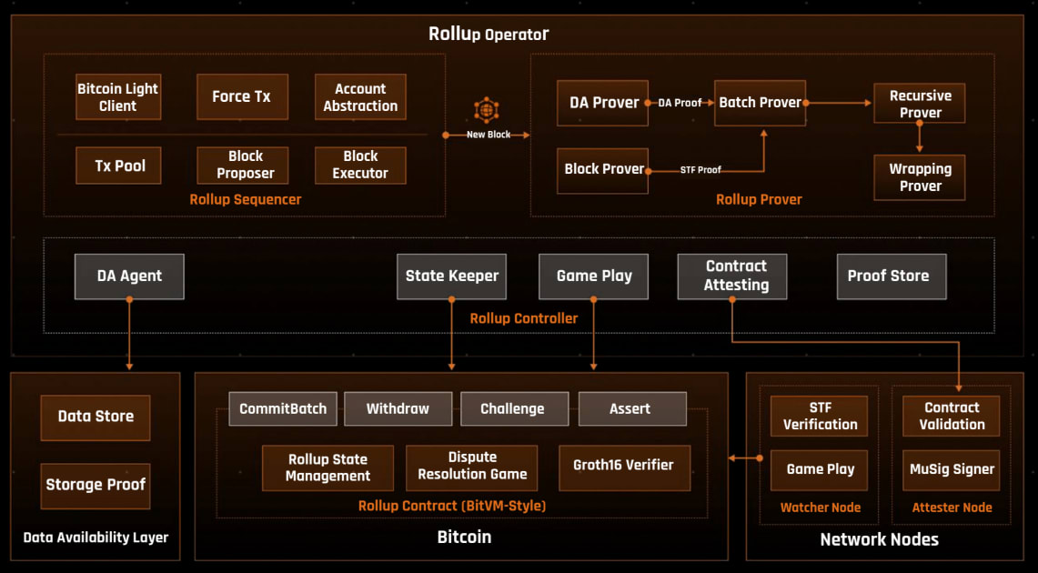 Off-chain transactions are aggregated and processed, a ZK proof of state change is generated, and this proof is then uploaded to Bitcoin L1 for finalization. To accommodate data storage not supported by Bitcoin itself, Merlin operates a Data Availability Committee (DAC), comprised of oracle nodes that store and verify off-chain data. Under the proposed structure, these DAC nodes are required to stake BTC and are penalized if they sign incorrect state updates that later become problematic.