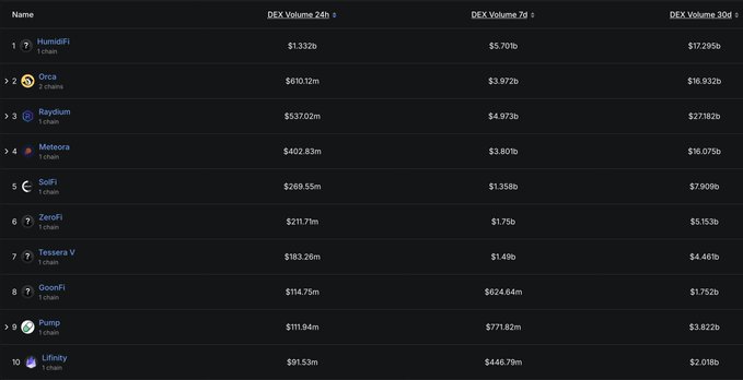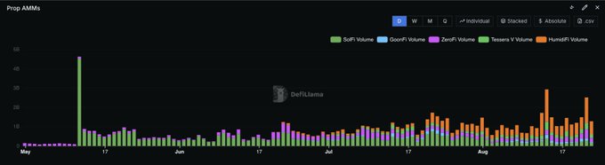 5 out of the top 10 are propAMMs contributing >50% of all solana dex volumes over the past 24h period