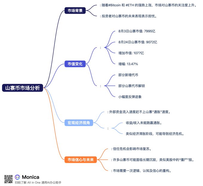 Regarding altcoins, many people are worried about whether altcoin season will arrive after the recent #Bitcoin and #ETH surges, especially the latter's significant strength! In fact, let's not even talk about altcoins not rising. On August 17th, I posted a quick summary of my personal records. Since August 3rd, the altcoin market capitalization (excluding ETH) has reached $799.5 billion. As of today, it's $907.2 billion. Over the past 21 days, the altcoin market capitalization has increased by $107.7 billion, a 13.47% increase. Based on my personal data, altcoin market capitalization has grown over these 21 days. Of course, this market capitalization growth also includes some newly added tokens and the unlocking of some altcoins, but it also shows that many altcoins are beginning to rebound slightly. Therefore, I believe the question of whether or not altcoins will rise can be approached from a macroeconomic perspective. Although the altcoin market capitalization has seen a slight increase, the key issue is that the inflow of external funds has clearly not kept pace with the rapid pace of altcoin "inflation." From an economic perspective, when earnings/revenues fail to keep pace with inflation, economic problems arise, and stagflation sets in. The current altcoin market is similar to a period of stagflation. Economically, stagflation is often followed by a subsequent economic crisis. Of course, in the crypto world, an economic crisis won't occur, but a revolution in altcoins—a restructuring of logic, cognition, and market confidence—is necessary. Otherwise, market confidence in altcoins remains a major concern. Once a crisis of trust emerges, it's difficult for the market to recover. Of course, from another perspective, many altcoins will ultimately face a "zombie" state. Just like the long bull run in the US stock market, you can still find a large number of "zombie" stocks languishing at the bottom, simply because they remain unmentioned.