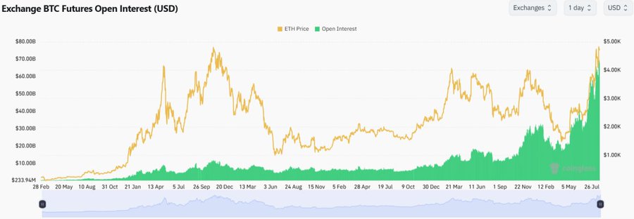 Meanwhile, Futures Contract $ETH open interest hit a new record high of $71 billion, nearly seven times the volume of the 2021 high.