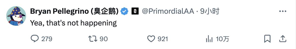 As of this writing, unlike the “harmonious” interactions between Stargate and Wormhole following LayerZero’s acquisition proposal, Stargate’s official Twitter account hasn’t posted a single update since Wormhole’s acquisition proposal. LayerZero’s only response, apparently from co-founder Bryan, is this: “That’s not happening.”