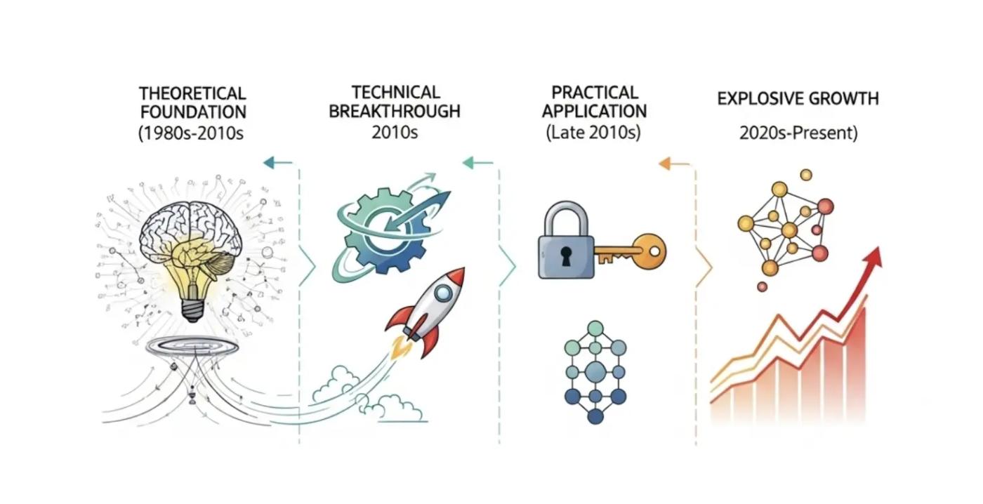 The development of zero-knowledge proof (ZK) technology did not happen overnight, but rather took decades of theoretical accumulation and engineering exploration. The overall process can be divided into the following key stages: