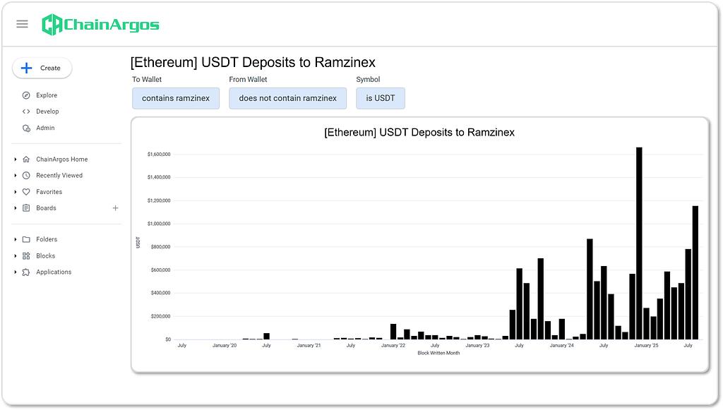 Here are USDT deposits on Ethereum for another Iranian crypto-asset exchange, Ramzinex: