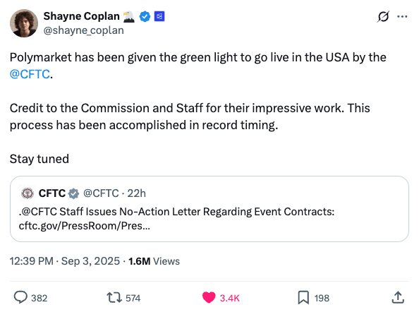 (5) Polymarket has been given the green light to go live in the USA by the CFTC