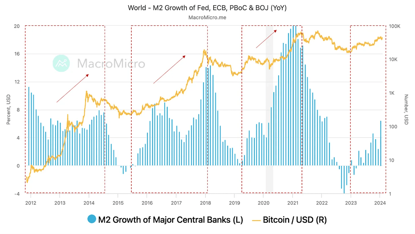 Global liquidity (M2) – total money supply of central banks in major economies (US, EU, China, Japan, Korea)