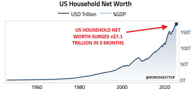 Newly released data shows that US household net worth jumped by +$7.1 TRILLION in Q2 2025 alone.