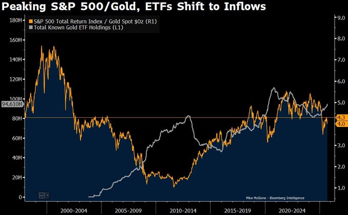 Lastly, what's even more incredible is the S&P 500 relative to gold.