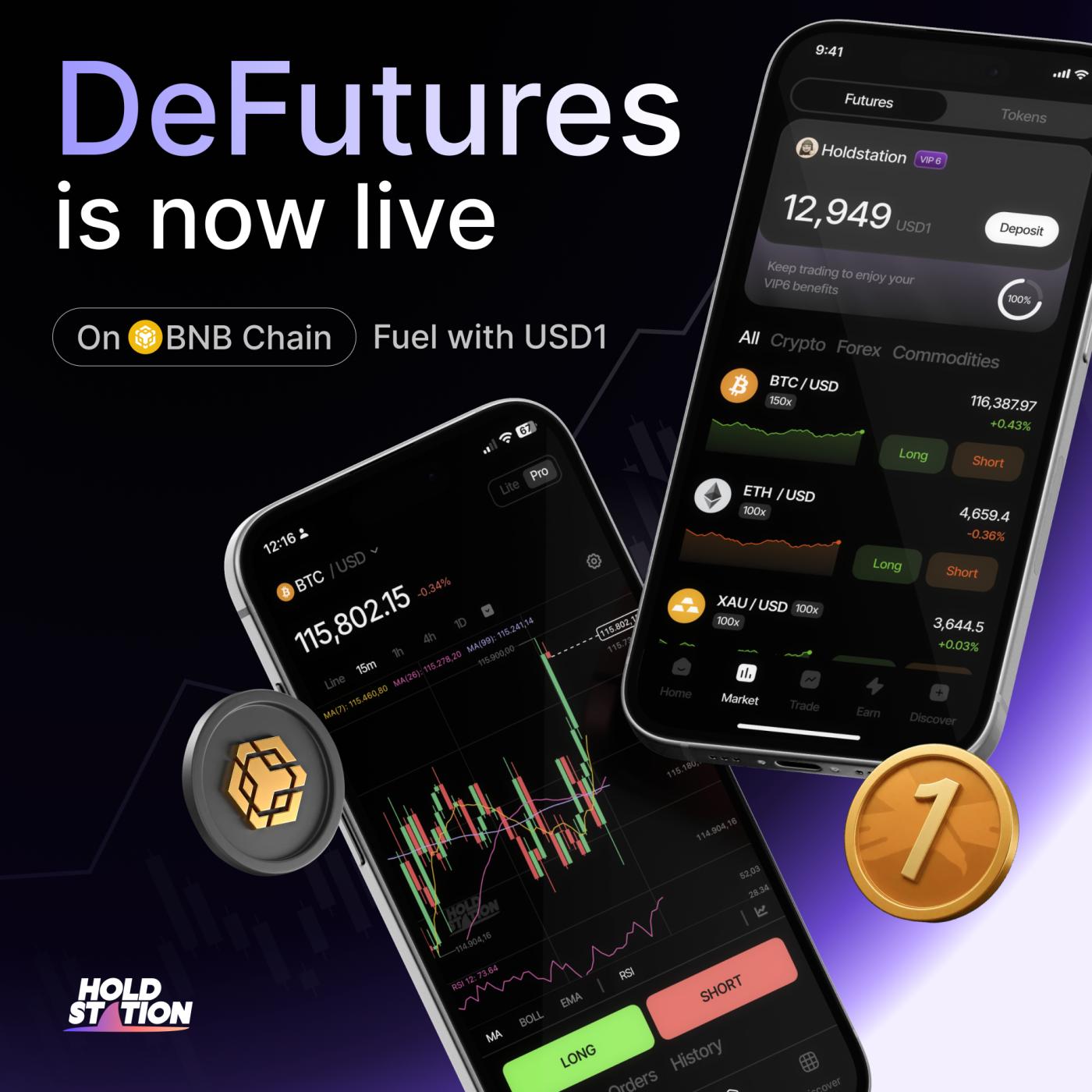 What is DeFutures? Perpetual futures trading platform on Holdstation wallet, using USD1 on BNB Chain with maximum leverage of 100x.