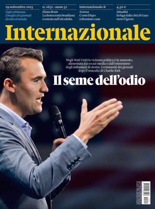 According to Italy’s INTERNAZIONALE Charlie Kirk was the seed of hate. These journalists are “cattivi maestri” or “bad professors.” They weaponize the minds of the weak. Their moral responsibility is equal to or greater than that of violent people. We must fight and reject