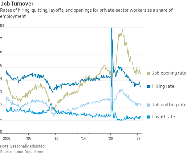 For private-sector workers, the job vacancy rate held at 4.5% in August, unchanged from July and down from 4.7% a year earlier.