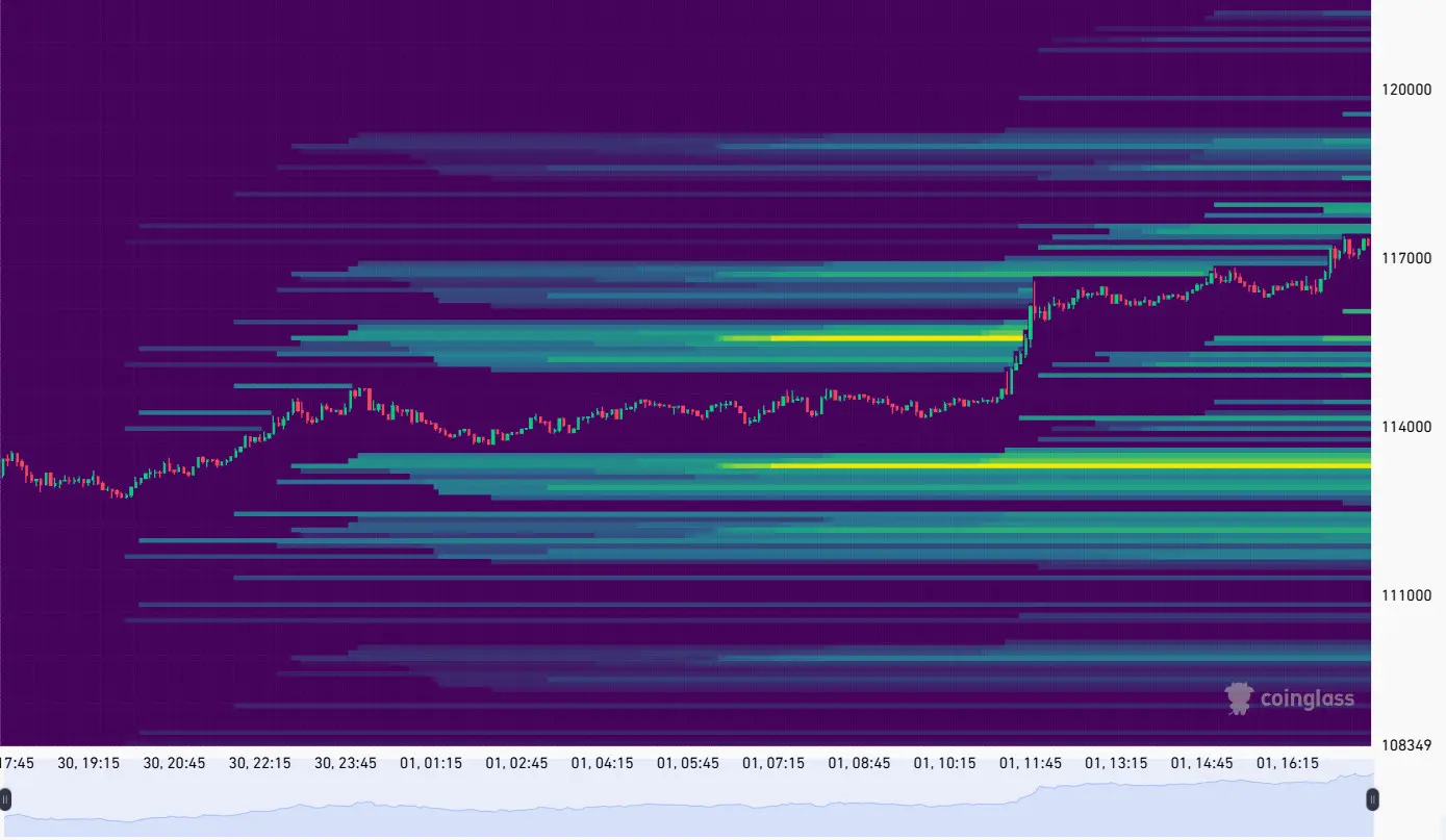 BTC recovered above $117,300 in a rapid shift of sentiment. The move erased over $15.79M in short positions for just one hour. Over $178M in BTC shorts were liquidated in the past day. Based on other methodologies, crypto liquidations were counted as over $600M for the past day.