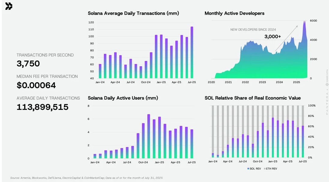 This month Pantera Capital launched Solana Company (Nasdaq: HSDT), a Solana-backed Digital Asset Treasury that closed over $500 million in private placement with the potential to raise over $1.25 billion aggregate gross proceeds.