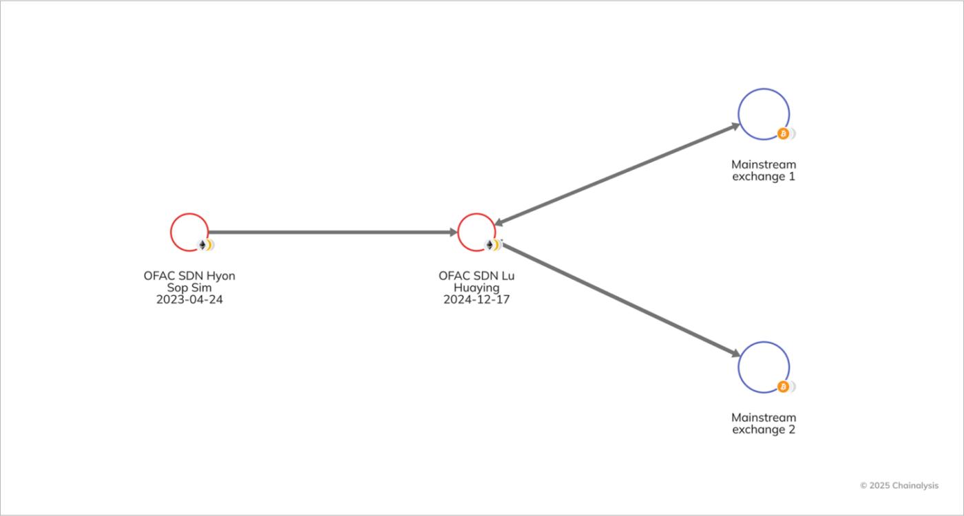 In early 2023, OFAC sanctioned Sim Hyon Sop (Sim), the representative of Korea Kwangson Banking Corp (KKBC), and designated his cryptocurrency address. Sim has received tens of millions of dollars in cryptocurrency, including a portion of the proceeds of North Korean IT workers. His counterpart, Lu Huaying (Lu, a Chinese national residing in the UAE), has also been sanctioned for his involvement in laundering IT worker funds for the North Korean regime.