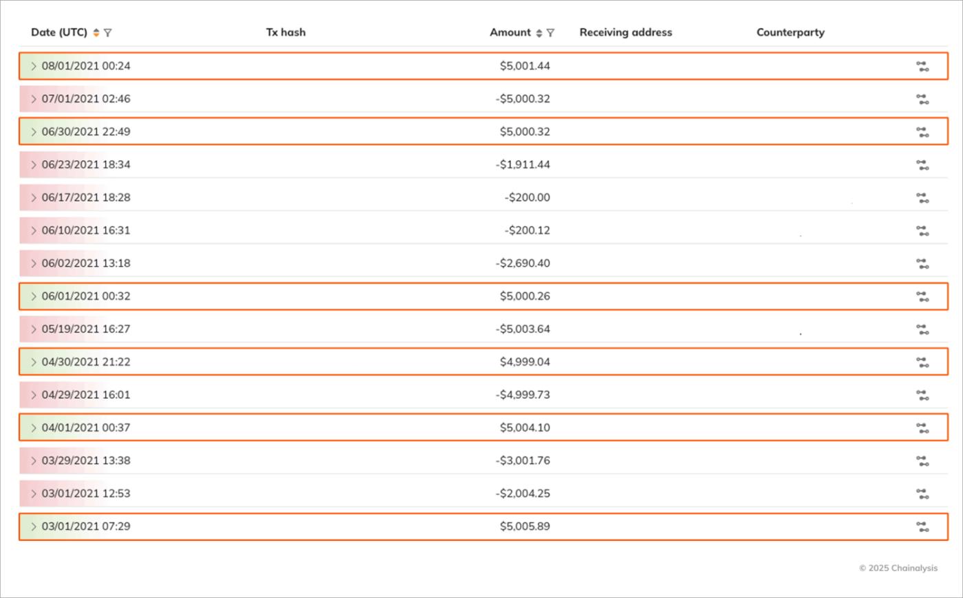 Once hired, they request payment in stablecoins, which have stable value and are popular with over-the-counter (OTC) traders. Examination of on-chain activity associated with the payment addresses of North Korean IT workers reveals that these wallets receive regular payments of approximately $5,000 per month, suggesting they are payroll payments.