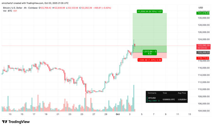 CLOSED #BTC longs at $122.3k. $1,200 gain in about 4 hours. Just got off my flight, I would have likely closed higher at $123.5k+ if the wifi was working. Would've made a bit more profits but a win is a win. I took full profits on the trade, I'll be back at the weekly close.