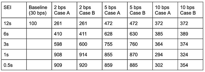 Table 4: SEI - USDC pool revenue, for a given transaction fee, relative to current revenue in different scenarios, where in A and B, noise trading volume increases 25% and 50% when block time is halved, respectively