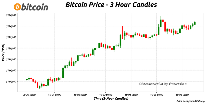 Bitcoin Current Price: $124,747.00 Price change over the last 7 days (3-hour intervals): High: $125,725.00 Low: $112,714.00 #Bitcoin $BTC #Bitcoin10Days