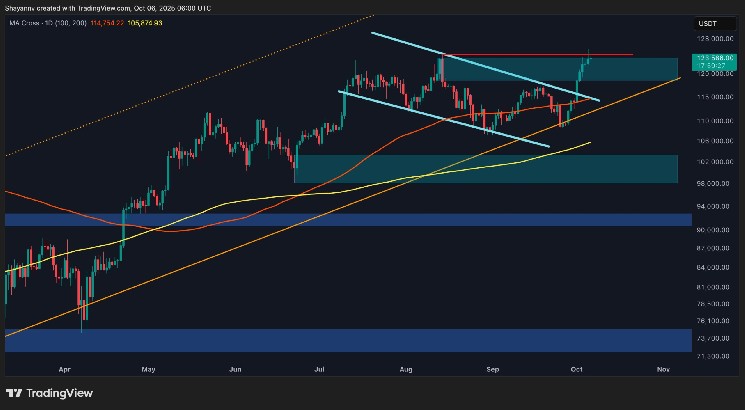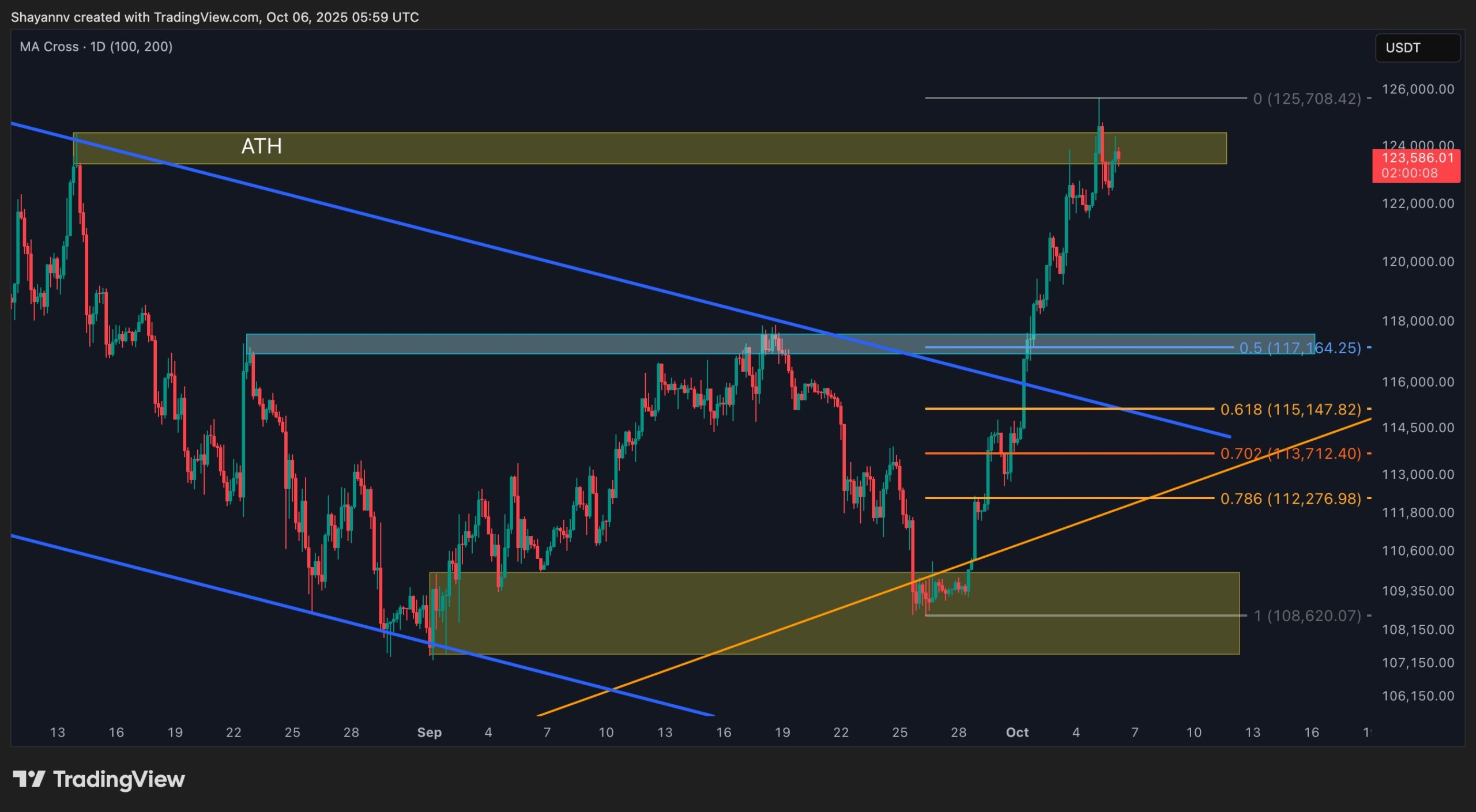 Bitcoin has broken above its ATH at the $125K region, signaling strong momentum.
