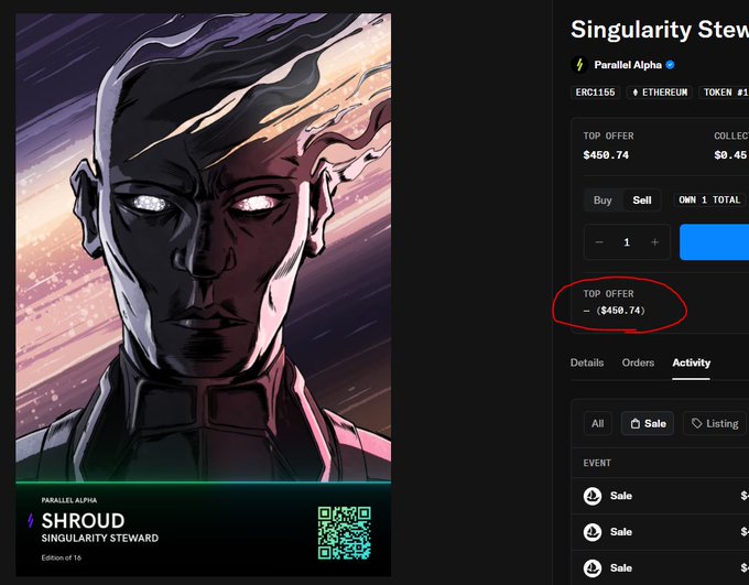 I made it to top 16 in a @ParallelTCG tournament earlier this year, securing not only $5000, but this sick playable NFT/card that has a top offer of $450 right now! If you're a competitive card game player, Parallel is a no-brainer🤑Don't let this scrub have more winnings