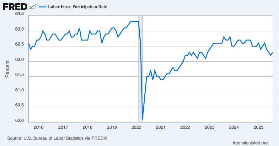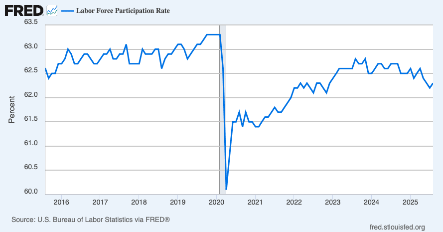 In the period since COVID, we’ve had remarkably high labor force participation for what our demographics are. The baby boom’s retiring and labor force participation was forecast to be trending down pretty significantly at this point but we’re not picking that up in our new statistics.