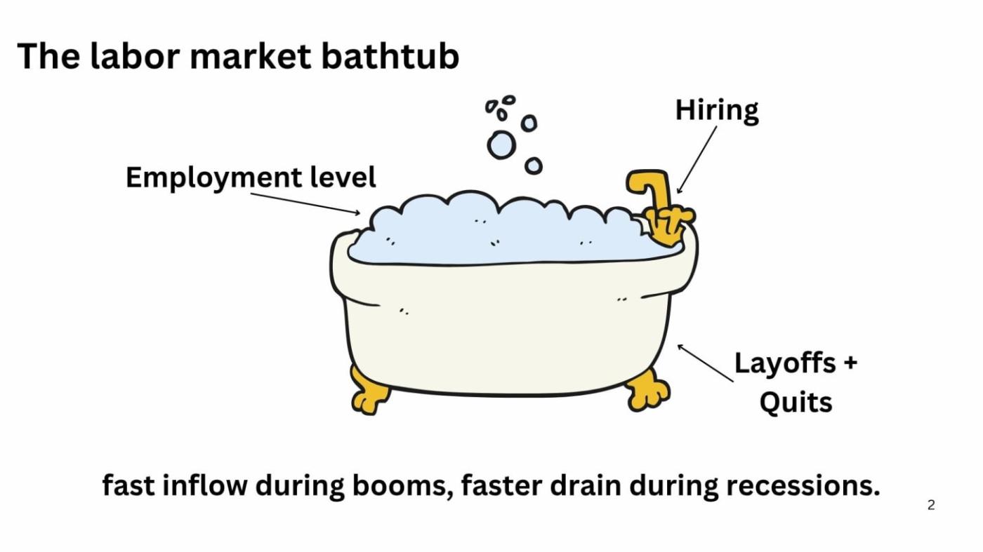 The job market is like a bathtub and there’s water going out and there’s water going in. If you look at the speed that the water’s coming in and the speed that the water’s going out, it will tell you something about the level of the bathtub.