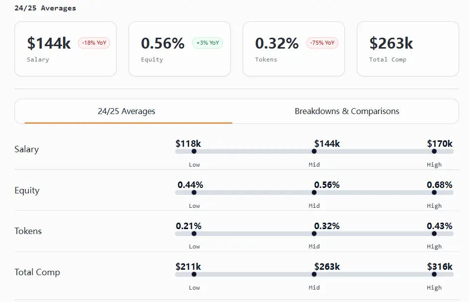 Reliable salary data in the crypto sector is extremely scarce. Dragonfly previously released its first salary-related dataset and analysis report (2023). Now, Dragonfly has released another report, covering 85 cryptocurrency companies, collected from the end of 2024 and the first quarter of 2025. The report also expands its research scope to include data from approximately 3,400 unique and non-duplicated employees and candidates, and where relevant, compares the findings with the 2023 report. PANews has excerpted some key points from the report; the following is a detailed description: