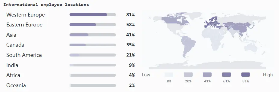 Eastern Europe: 63% of late-stage companies hire there, attracted by a strong engineering talent pool and cost-effectiveness.