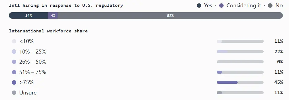 Nearly a quarter of companies with employees both in the U.S. and abroad said regulation directly contributed to their decision to expand international hiring.