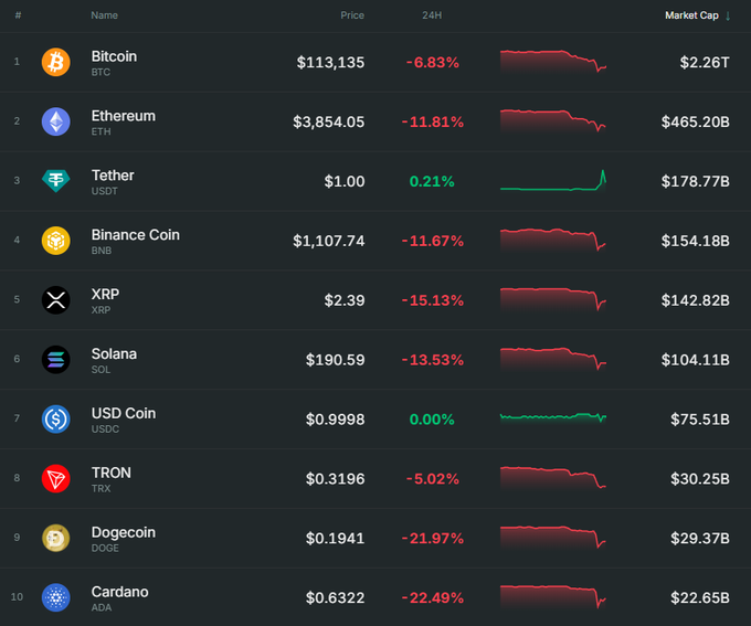 🚨 @realDonaldTrump's renewed threats to hike tariffs on China sent shockwaves through global markets — and #crypto felt it the hardest, with some #alts losing over 70% in minutes. 📉 Check real-time prices: coincheckup.com