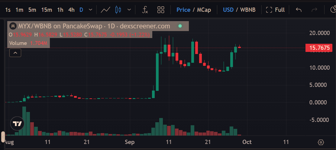 MYX currently has approximately 197 million in circulation, representing approximately 20% of the total. Within the "low circulation/high FDV" framework, unit price flexibility is significant. As long as new selling pressure is moderate (MYX airdrops are unlocked monthly) and market makers are willing to accept the offer, the price can remain high for extended periods.