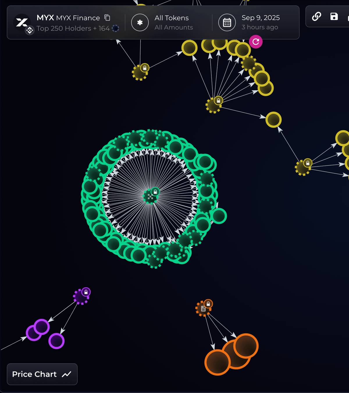 Immediately afterwards, the on-chain data team Bubblemaps posted a series of long posts on X (formerly Twitter): "The same entity used 100 newly funded wallets to take away approximately $170 million from the MYX airdrop", and also provided on-chain tracking details (posted continuously starting from September 9).