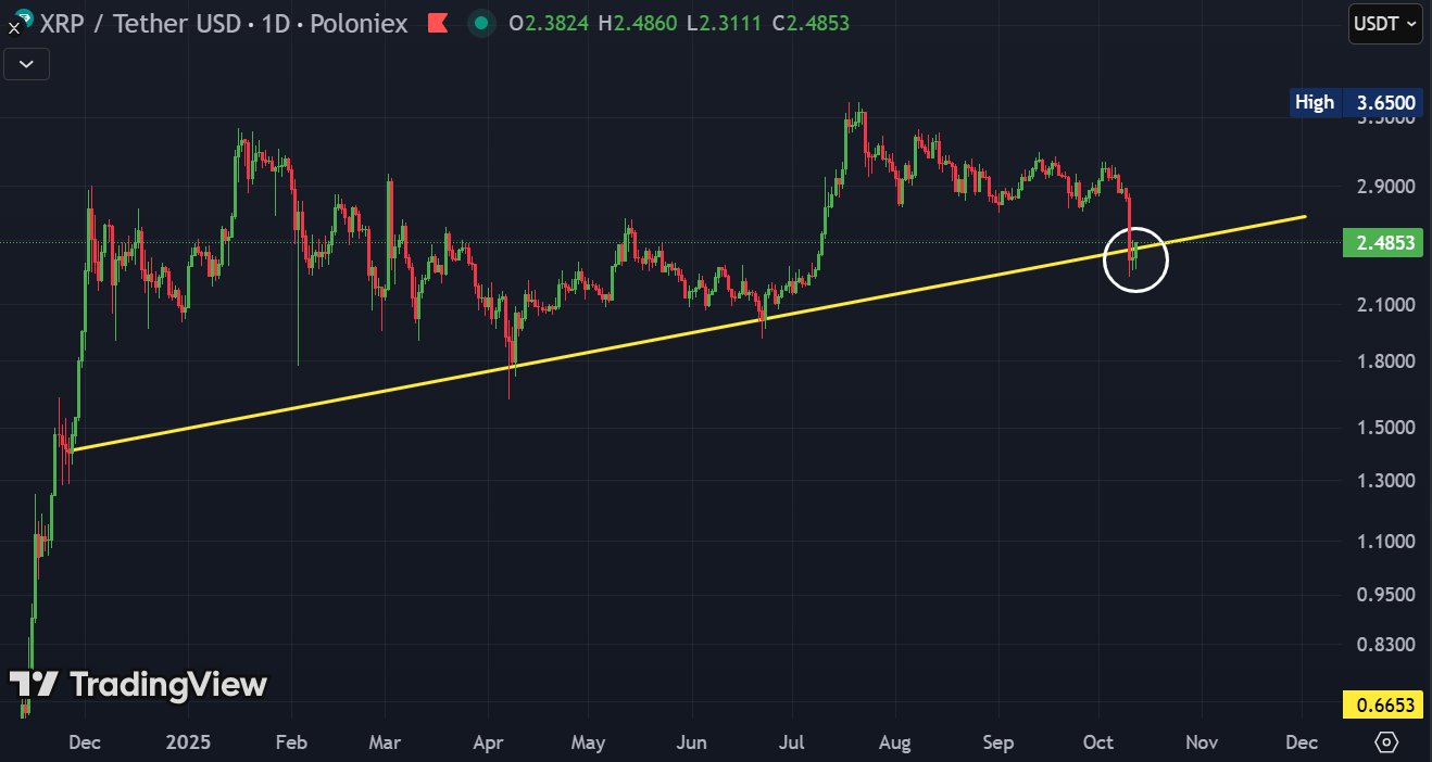 Scrubs noted that this establishes the price area as the most important support for XRP over the last three months. Furthermore, he highlighted that if XRP reclaims it, this would set the path for a rebound to above $3.10 as seen in previous instances.