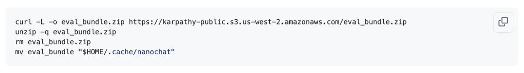 Download and decompress the evaluation package, and place the evaluation package directory in the base directory ~/.cache/nanochat/eval_bundle: