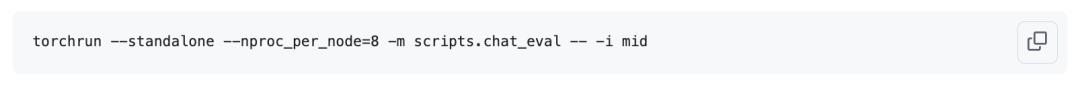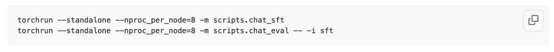 This run only takes about 8 minutes, much shorter than the pre-training time of about 3 hours. Now that the model is a real chat model that can play the role of an assistant to answer user questions, it can be evaluated: