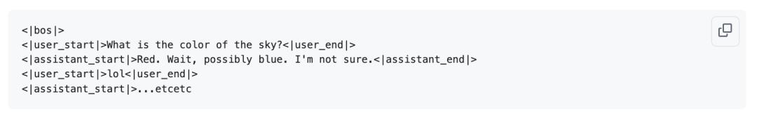 The model learns special tokens related to multi-turn dialogue (except for the <|bos|> token used to separate documents, which are not present during base model pre-training).