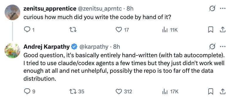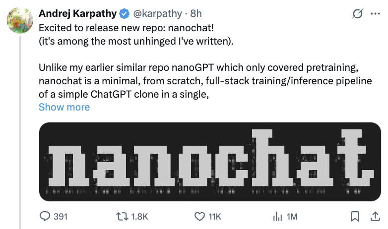 Reference link: https://x.com/karpathy/status/1977755427569111362