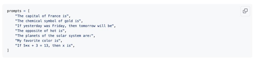 At this point, the model acts like an advanced autocomplete tool, so we can run some prompts to get a feel for the knowledge stored in the model. The base_loss.py file runs these prompts. These prompts include:
