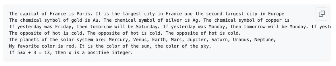 So, the model knows that Paris is the capital of France, Au stands for gold, Saturday comes after Friday, "cold" is the opposite of "hot," and even knows the planets in our solar system.